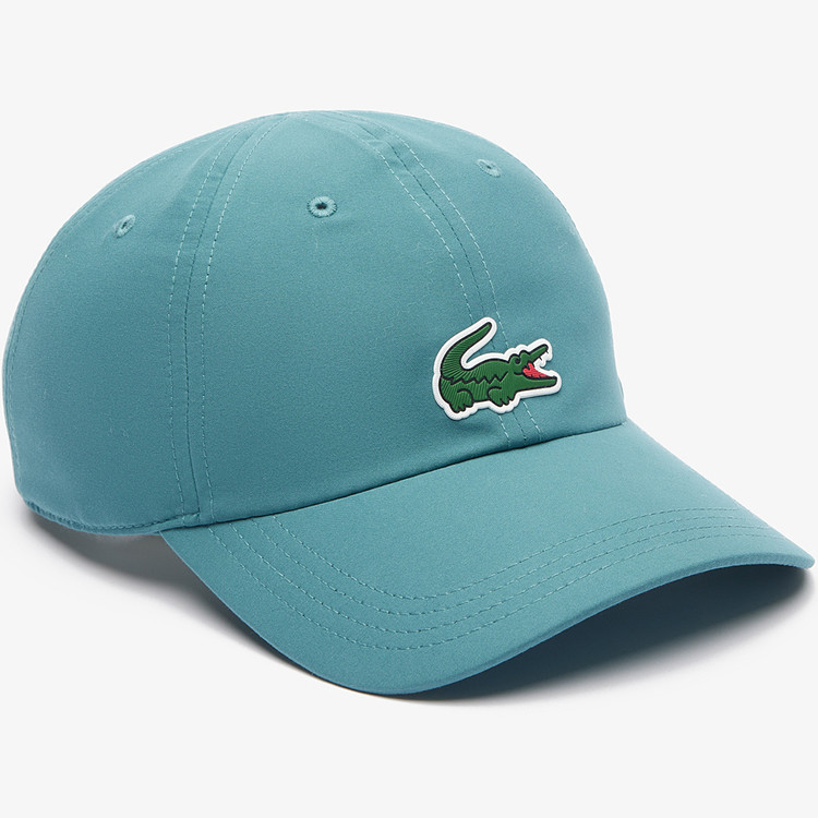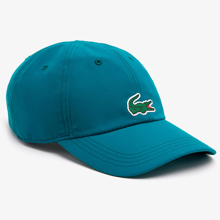 Crafted in lightweight absorbent microfiber, this solid cap from the Lacoste Sport x Novak Djokovic collection is a true winner. Equipped with an adjustable strap in the back and breathable eyelets all around, it ensures unbeatable comfort as you play. This protective athletic accessory features an iconic green crocodile appliqué on the front.