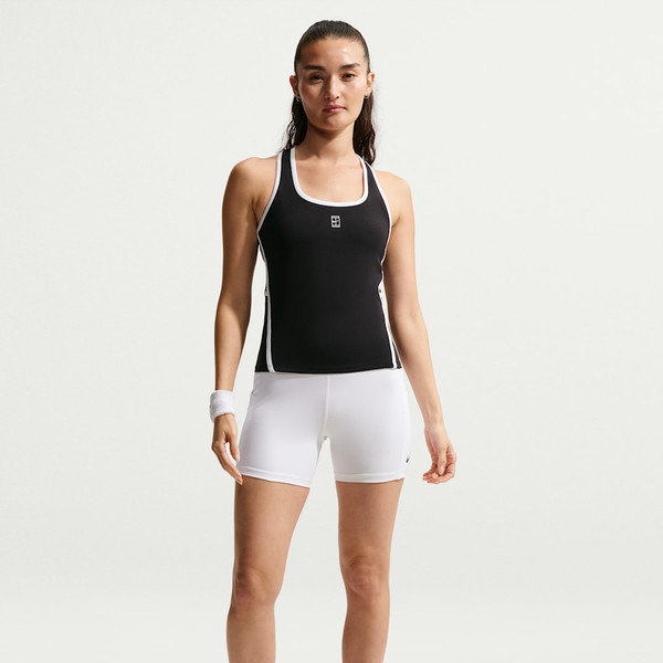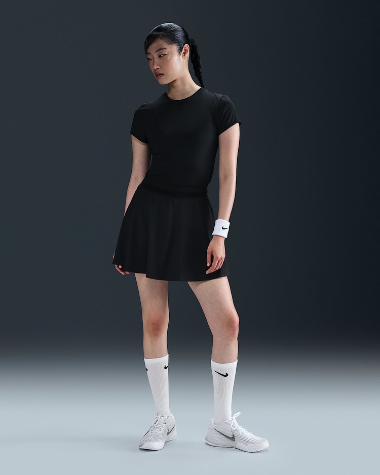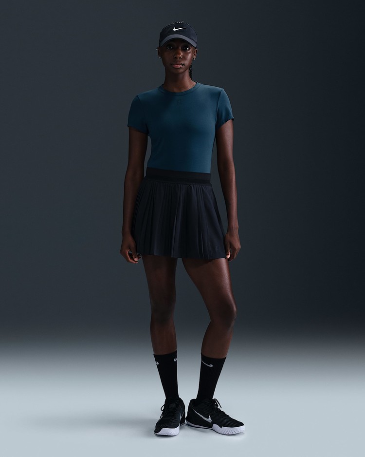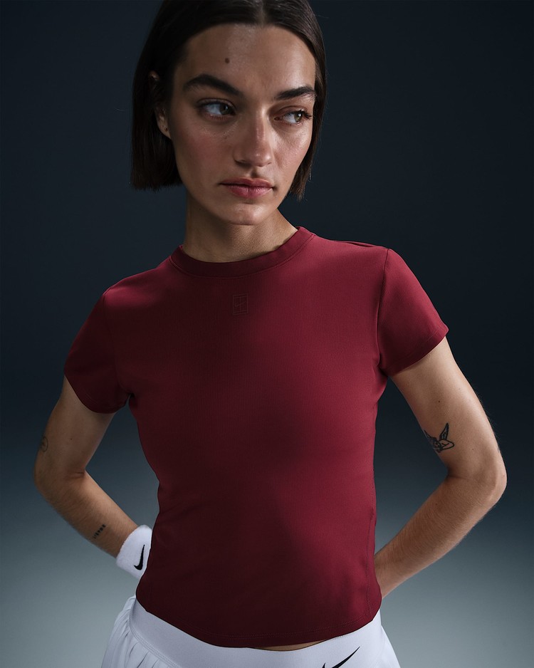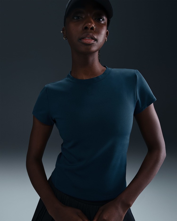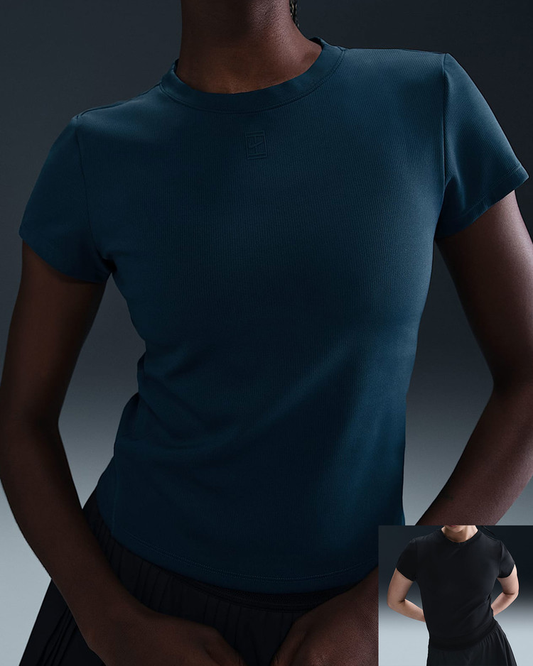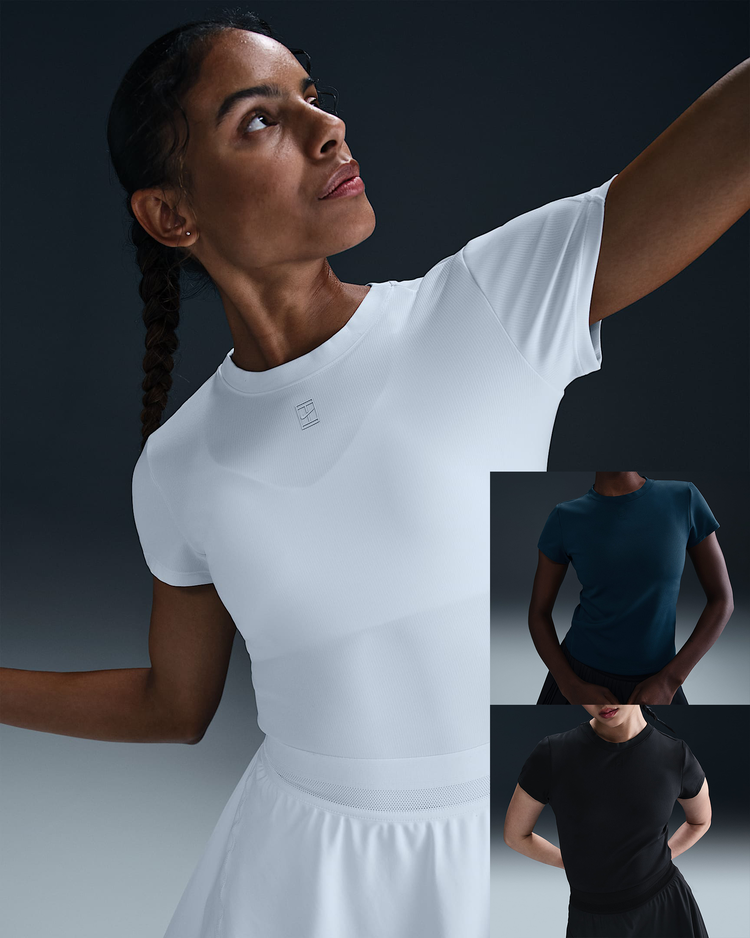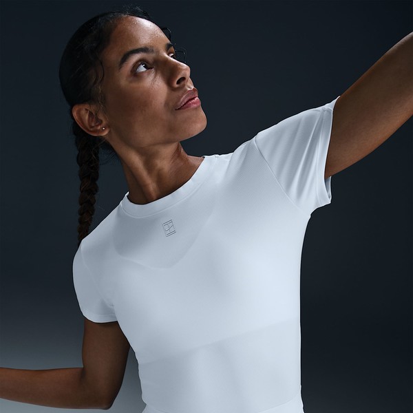 부드럽고 땀 발산 기능이 적용된 골지 탑으로 코트 위에서 움직일 때 몸을 따라 늘어납니다. 테일러드 핏과 높은 네크라인으로 어떤 자세에서든 커버력을 유지해 줍니다.