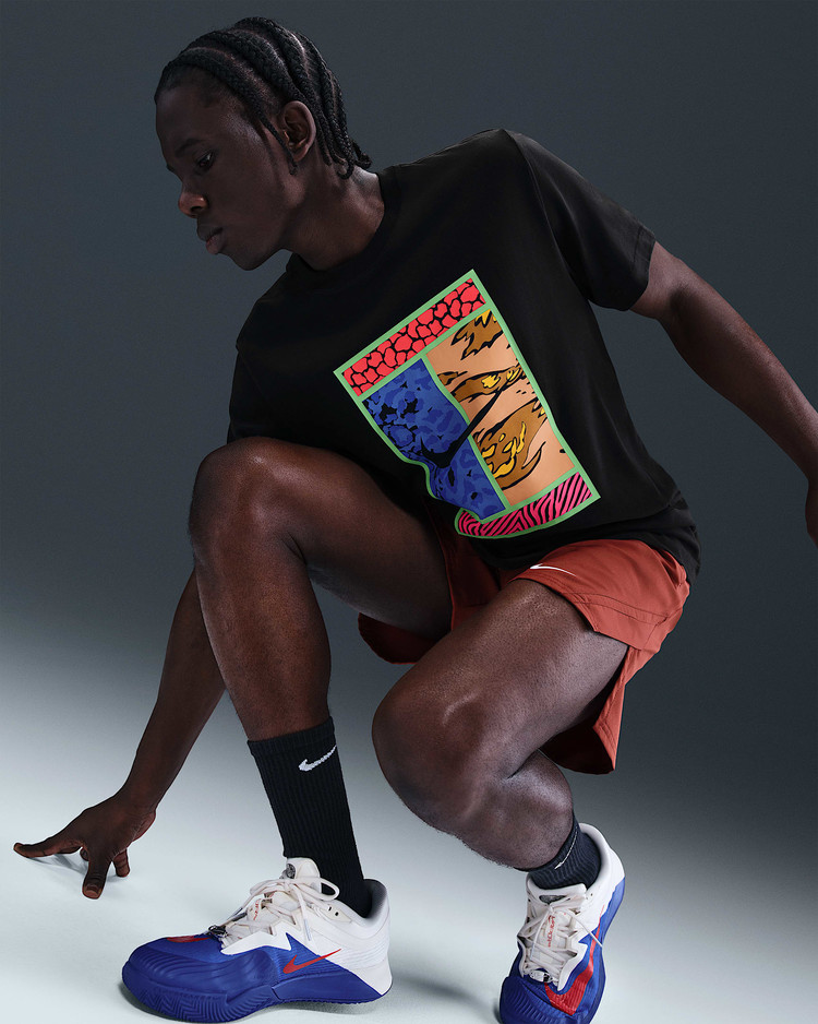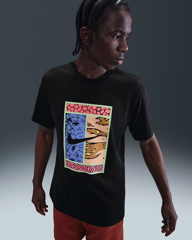 이 나이키코트 티셔츠는 여유로운 핏과 부드러운 면 소재로 어디에서나 편안하게 입을 수 있습니다. 재질: 면 57%, 폴리에스터 43%