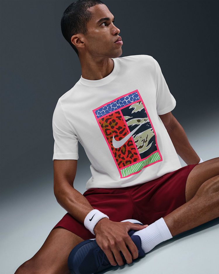 이 나이키코트 티셔츠는 여유로운 핏과 부드러운 면 소재로 어디에서나 편안하게 입을 수 있습니다. 재질: 면 57%, 폴리에스터 43%