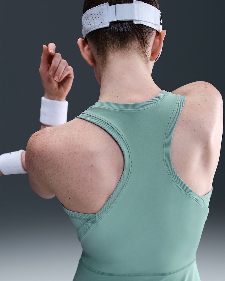 초부드럽고 신축성이 뛰어난 원단으로 제작되어 빠르게 건조되는 빅토리 원피스는 스윙에 집중할 수 있도록 도와줍니다. 겨드랑이 아래의 립 패널이 움직임에 따라 유연하게 늘어나 자유로운 퍼포먼스를 제공합니다.